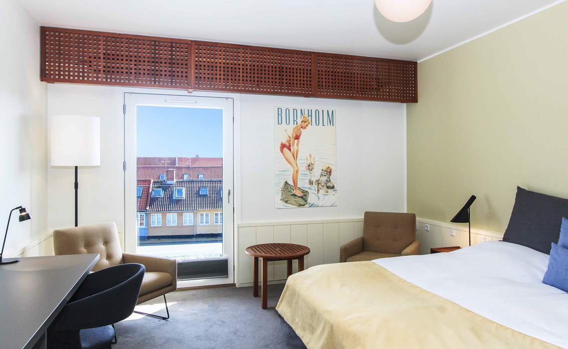 Griffen Spahotel har også værelser til landsiden, hvor du har kig mod den gamle bydel i Rønne. Alle værelser har fransk altan. Værelserne har skrivebord, dusch/wc, garderobeskab, køleskab, elkedel samt tv. Værelserne er beliggende i stueplan, 1. sal eller 2. sal. Der er adgang til elevator. Værelset kan også bookes til 1 person til en nedsat pris.