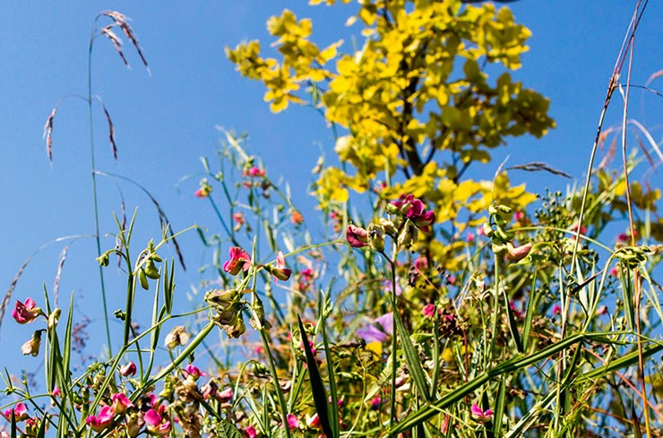 Embraced by nature, Green Solution House is amidst a mix of woods, wetlands, meadows and commons, which have been elaborately composed to create a diverse landscape. The Green Footprints Park is planted with biotopes native to Bornholm. The biotopes can be left to grow wild, which increases biodiversity, expands biomass and keeps maintenance requirements to a minimum. Local biotopes are adjusted to the specifics of the Bornholm climate and as such do not require irrigation beyond that of natural rainfall.